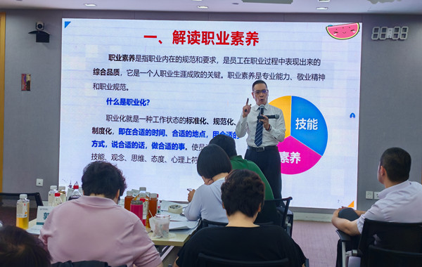 ![]() 郭老師分享職業素養是指職業內在的規范和要求,是員工在職業過程中表現出來的綜合品質,現場進行“職業素養測評”,職業化的三大內涵,良好職業素養的8個標準,商業人格塑造的4個技巧,讓領導喜歡的7個習慣等,學員們認真記錄,深受啟發!