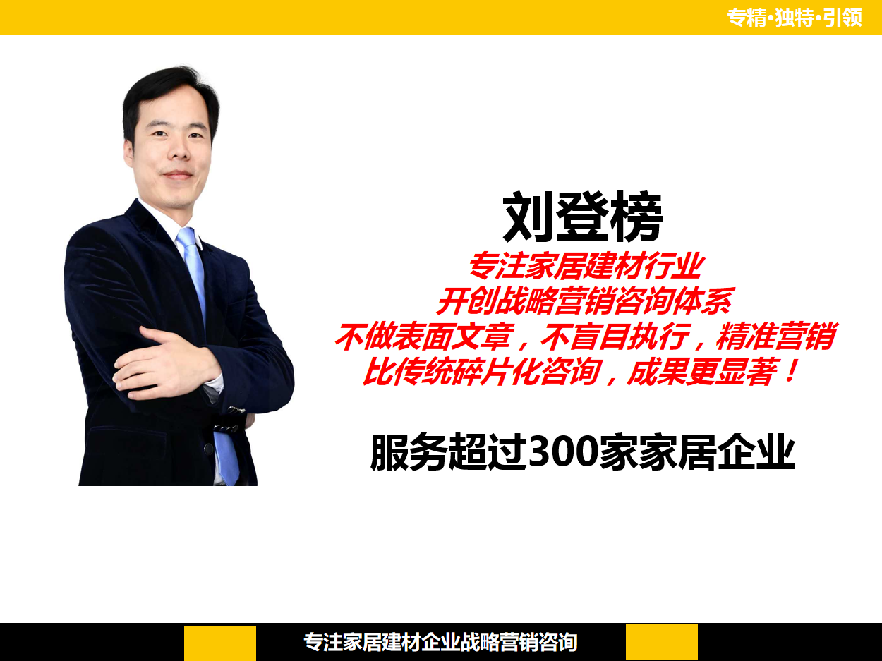 劉登榜老師以專精、獨特、引領為產品價值觀。劉登榜老師以懂行業、懂消費、懂經營在行業內著稱,同時深受多家家居建材企業領導團隊青睞,以務實、實干的精神為客戶提供專業戰略咨詢服務。 人物優勢 劉登榜老師十余年行業培訓經驗,以專精、獨特、引領為產品價值觀。劉登榜老師以懂行業、懂消費、懂經營在行業內著..