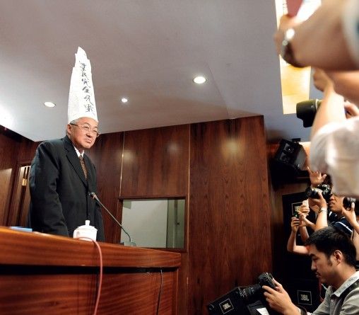 他頭戴“草民完全無罪”的紙帽子出場,并讓媒體拍照三分鐘。并說:“冤案古代有,未來也會有,但是有冤案都不敢出來喊,說明里面有問題,這幾位貪官污吏太兇殘了……”